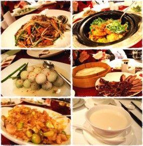 花雕蛋白蟹拑、玻璃蝦球、富貴雞、黑松露菌燒雞、蜜梅京燒骨、鴛鴦明蝦球