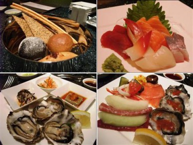 天婦羅、手握壽司、芒果雲吞伴香茅湯、秘製低溫三文魚配香檳魚子醬汁