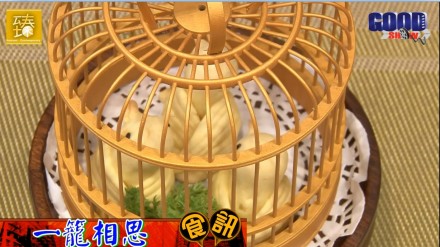 一籠相思. 傻豬叉燒包. 富貴金魚餃. 杏香荔茸鴨. 野菌天鵝酥. 龍蝦湯蝦皇餃. 金沙熊貓