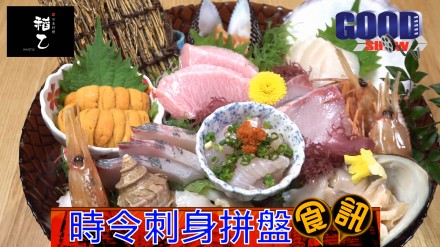 時令刺身拼盤:馬糞海膽,油甘魚,粒貝,北寄貝,牡丹蝦,北海道鮮帶子,赤貝,拖羅,深海池魚,蜜金鯛薄切