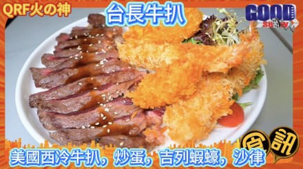 2. 台長牛扒(美國西冷牛扒、炒蛋、吉列蝦蠔、沙律)